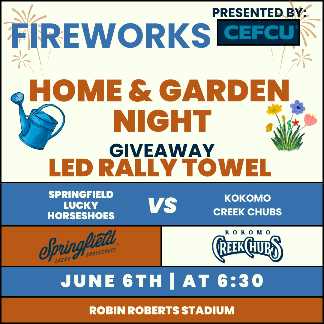 It’s another exciting Saturday night at the ballpark as the ‘Shoes battle Kokomo Creek Chubs! Celebrate Home & Garden Night and grab a pair of LED Rally Towels to light up the stadium. Plus, don’t miss the spectacular postgame fireworks show presented by CEFCU!