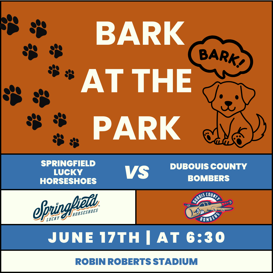 Join us for Bark at the Park as the ’Shoes take on the Dubois County Bombers! Fans are invited to bring their dogs to the ballpark and enjoy a fun night of baseball alongside their four-legged friends. It’s the perfect outing for dog lovers and baseball fans alike at Robin Roberts Stadium.