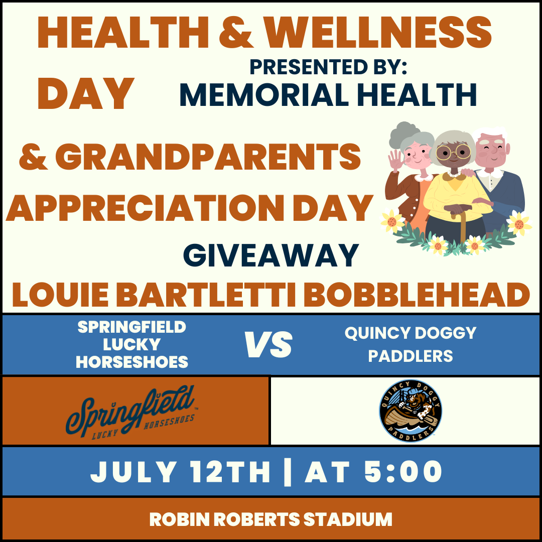 Celebrate family and baseball during Grandparents Appreciation Day as the ’Shoes face the Quincy Doggy Paddlers! It’s also Health & Wellness Night presented by Memorial Health, promoting healthy habits for fans of all ages. Fans can grab the collectible Louie Bartletti Bobblehead Giveaway while supplies last. Bring the family out for a special Sunday at Robin Roberts Stadium.