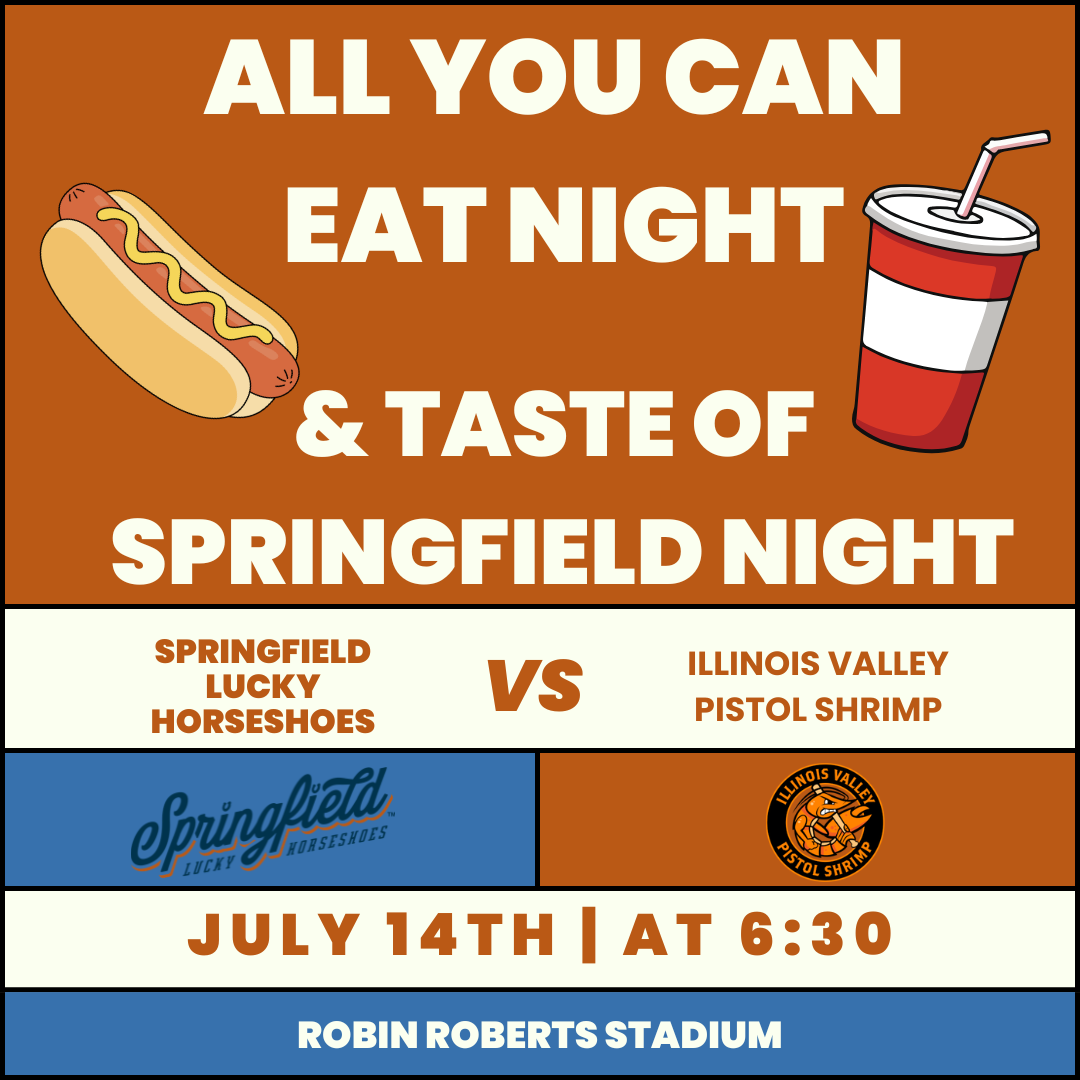 Come hungry for All You Can Eat Night as the ‘Shoes take on the Illinois Valley Pistol Shrimp! Enjoy unlimited ballpark favorites while celebrating the flavors of the city during Taste of Springfield Night. It’s a delicious night of baseball you won’t want to miss!