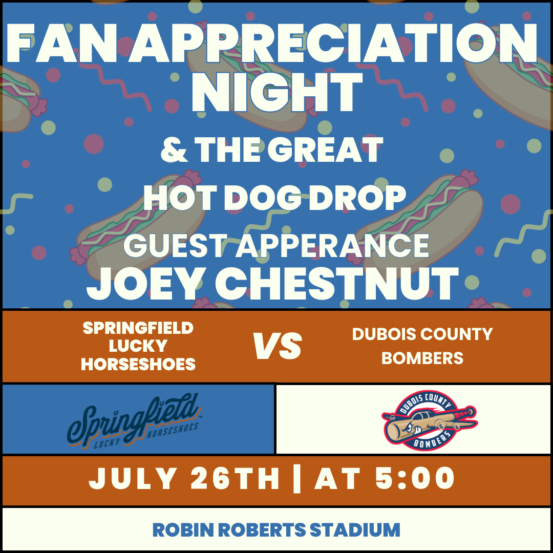 Join us for the final Fan Appreciation Night of the season as the ’Shoes take on Rex City Baseball! We’re celebrating our incredible fans with special surprises, The Great Hot Dog Drop, and an exciting appearance from competitive eating champion Joey Chestnut. It’s the perfect way to wrap up the season at Robin Roberts Stadium!